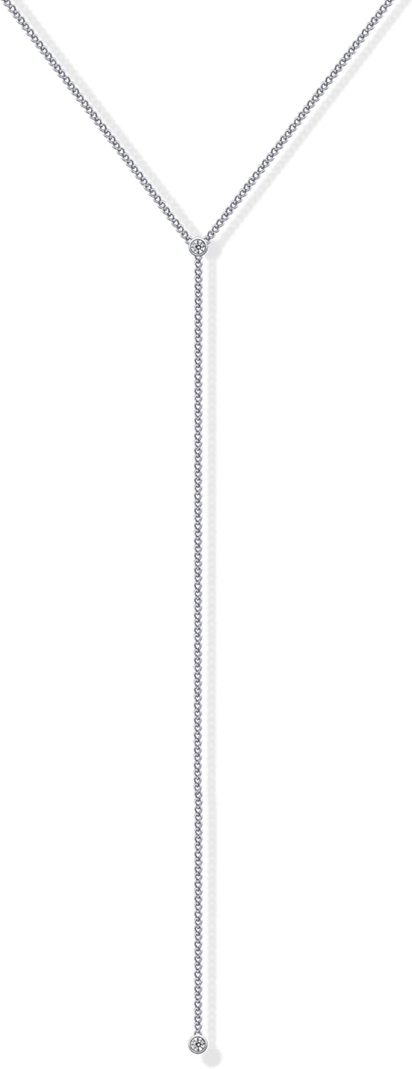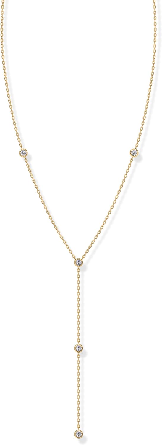 14K Gold Plated Drop Lariat Chain for Women - Gold Cubic Zirconia Long Necklace - Station Star Layered Beaded Y Necklace