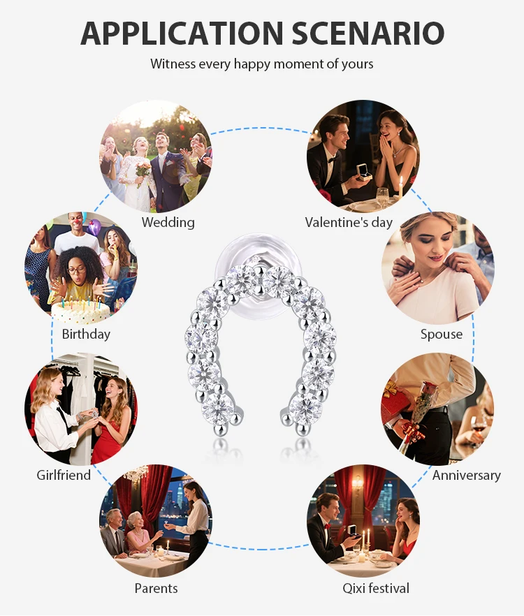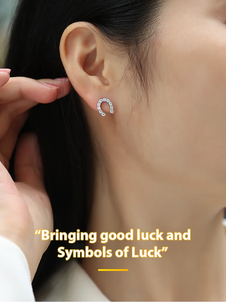 US Warehouse 925 Sterling Silver Horseshoe Earrings with Gems Ladies Fine Earrings U Shape Stud Earrings with Moissanite