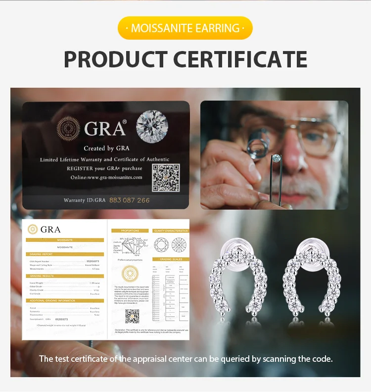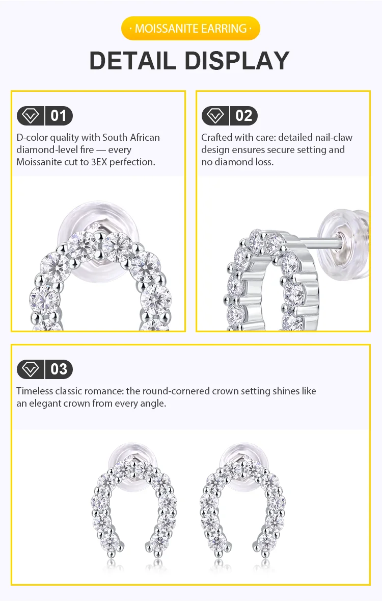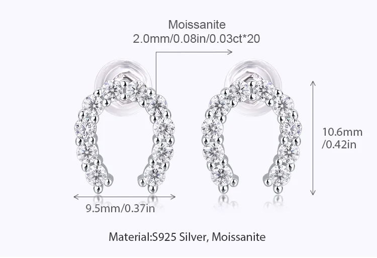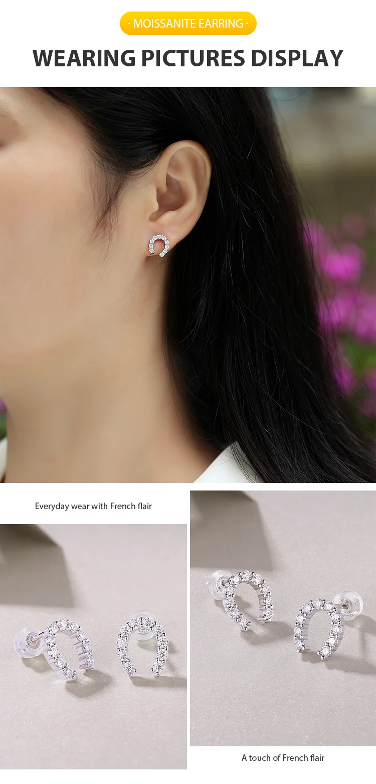 Product Name: Ladies Fine Earrings U Shape Stud Earrings with Moissanite